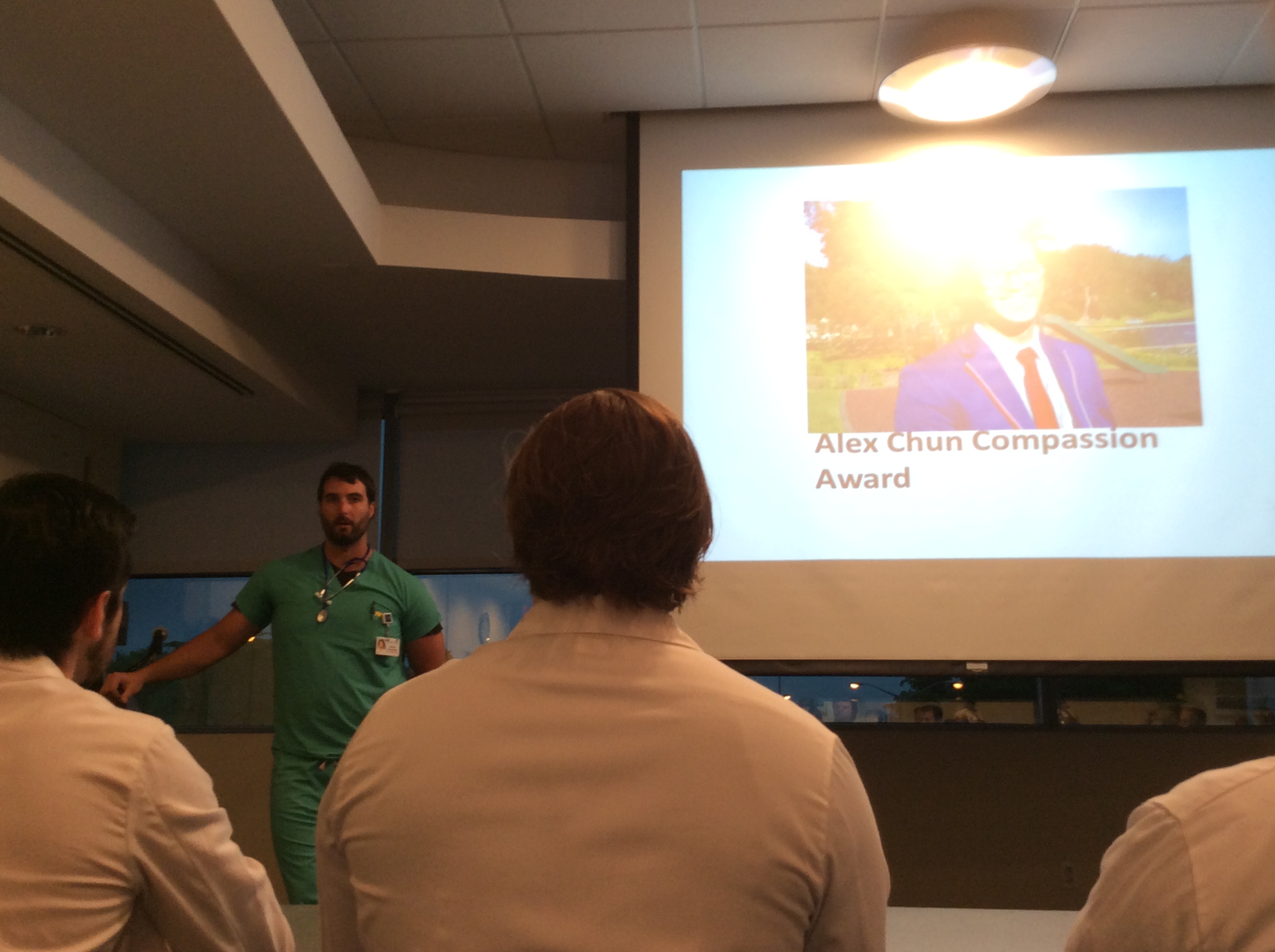 The award is designed to recognize surgical residents who displayed the compassion that Alex epitomized in his patient interactions. The first award was given on June 18, 2016 to Dr. Jushar Barot. In addition, the Alexander D. Chun memorial scholarship in neuroscience has been established at Oberlin College, with preference given to a minority student majoring in neuroscience.